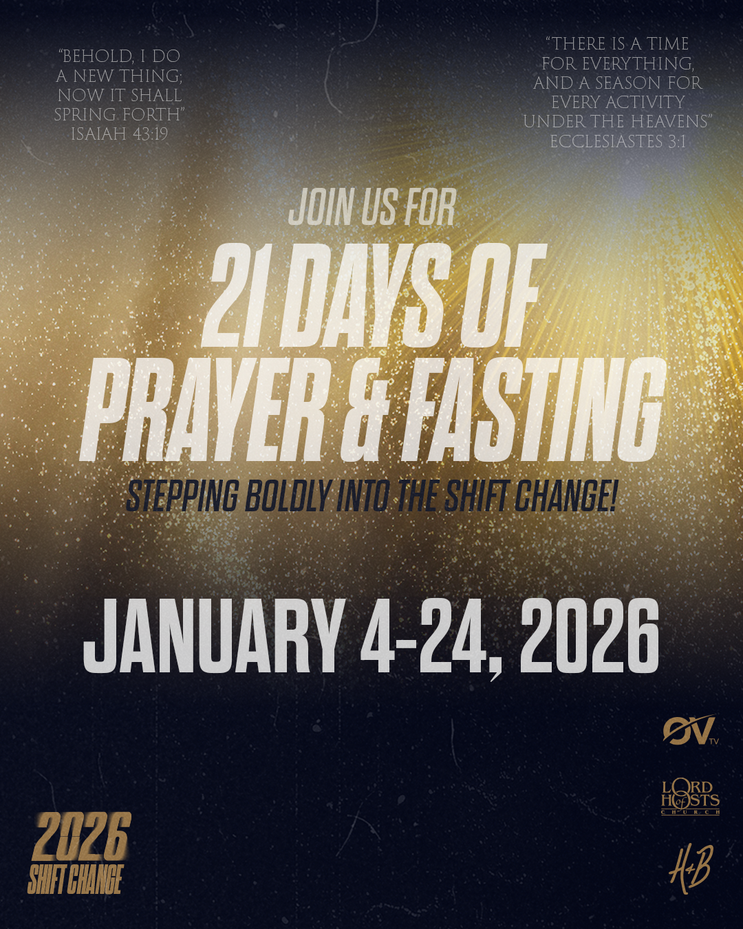 We are rooted in relentlessly pursuing the heart of God through strategic, intercessory prayer. We know that God releases His power in all areas of our lives when we have dedicated and fervent prayer! For this reason, January has been designated as “Prayer and Fasting Month” for the entire Lord of Hosts Church family. We believe corporate prayer ushers in spiritual unity and alignment with the Spirit of the Lord for the new year, and as we welcome this brand New Year, we also decree that in 2026 we will be Stepping Boldly into the Shift Change!